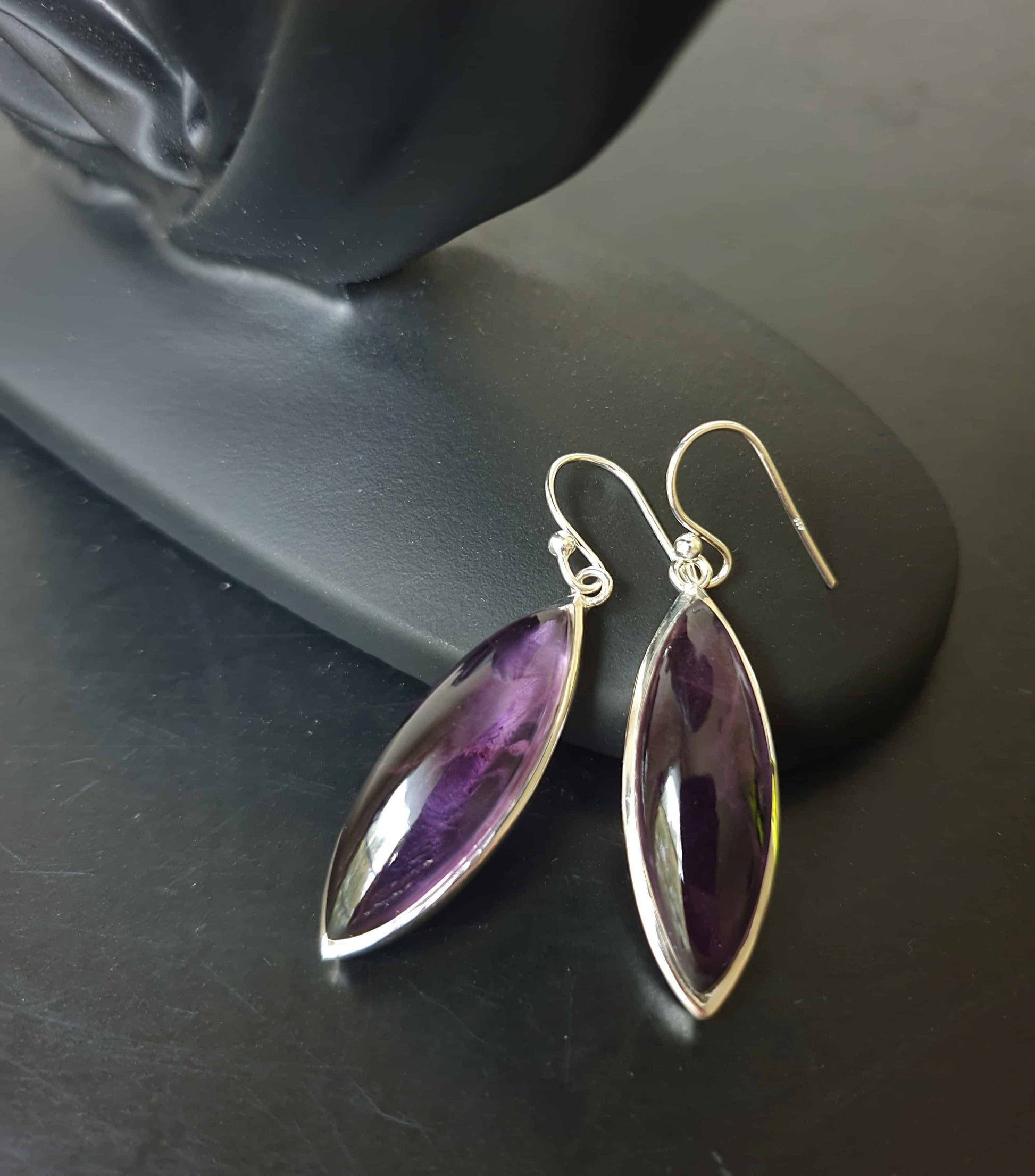A large and beautiful statement piece are these Amethyst drop earrings, catching the light at every angle. Wearing amethyst can assist with purifying energy, calmness, clarity and enhancing intuition.