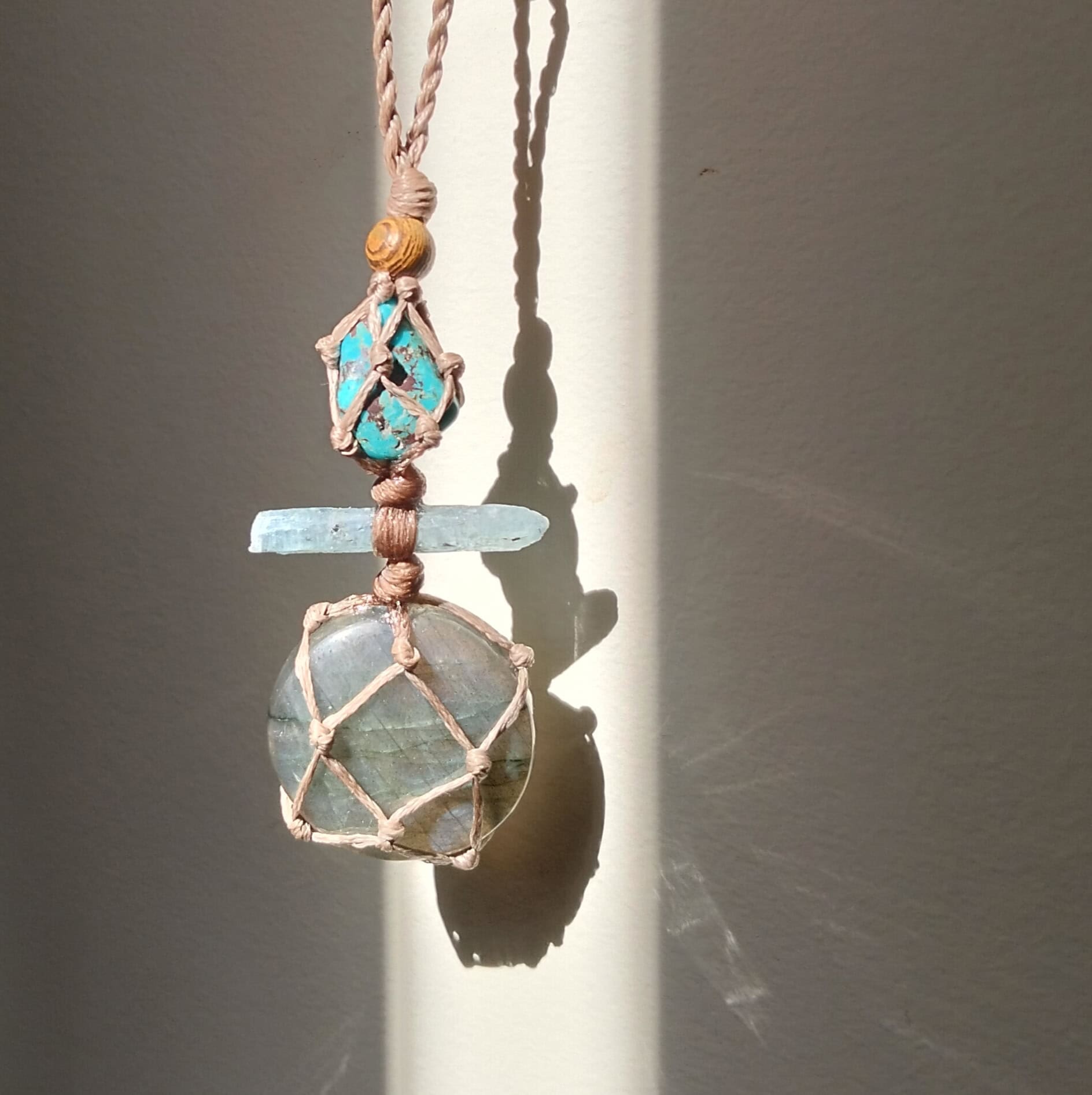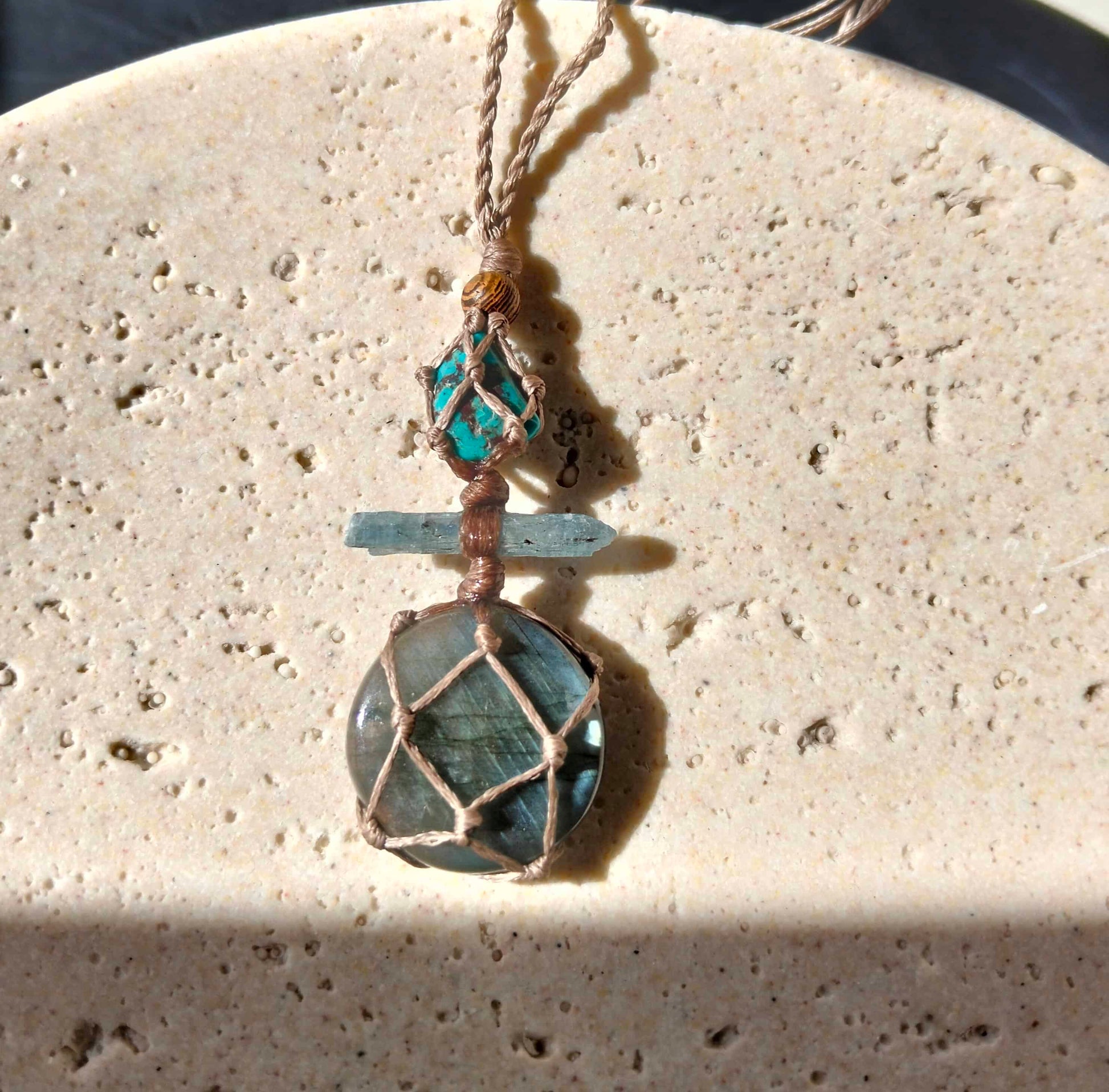 Labradorite, Kyanite and AA Turquoise Talisman Necklace