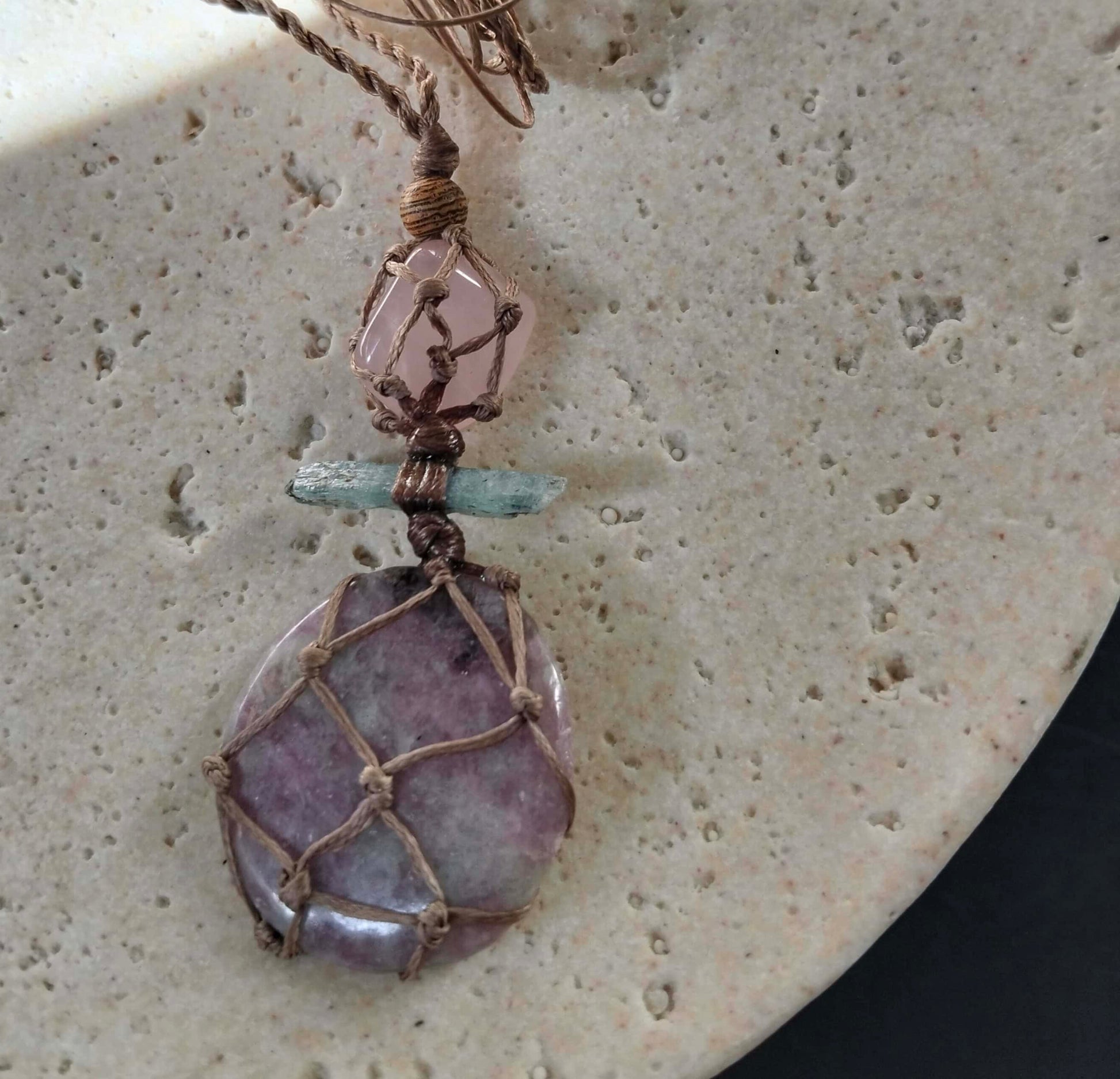 Lepidolite, Kyanite and Rose Quartz Talisman Necklace