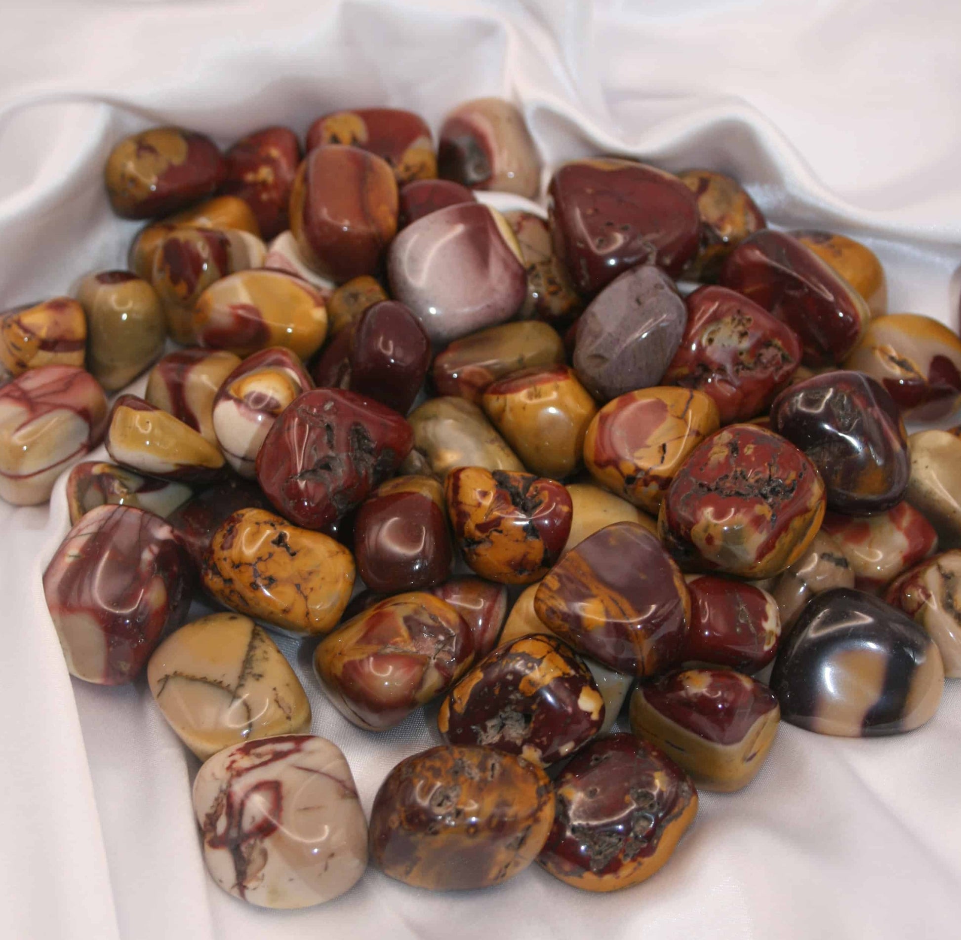 These vibrant Mookaite tumbled stones are directly sourced from Mooka Creek Miners, Kennedy Ranges, Western Australia.